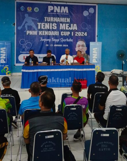 faktual.net, Kendari, Sultra. Badan Usaha Milik Negara (BUMN) yang bergerak di bidang pembiayaan menyelenggarakan Tournament Tenis Meja di Kota Kendari. Bertempat di Aula Balai Penggerak Guru Sulawesi Tenggara (Sultra), Permodalan Nasional Madani (PNM) selenggarakan Turnamen Tenis Meja PNM Kendari Cup I pada Sabtu, 20 Januari 2024.