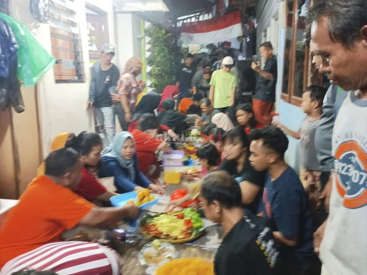 Usai doa dilanjutkan dengan pemotongan tumpeng dan Kue HUT Ke 78 Republik Indonesia yang dilakukan Ketua RT 004/07 Heri Prianto yang diserahkan kepada sesepuh yang bernama Kairan yang kini telah berusia 70an tahun.