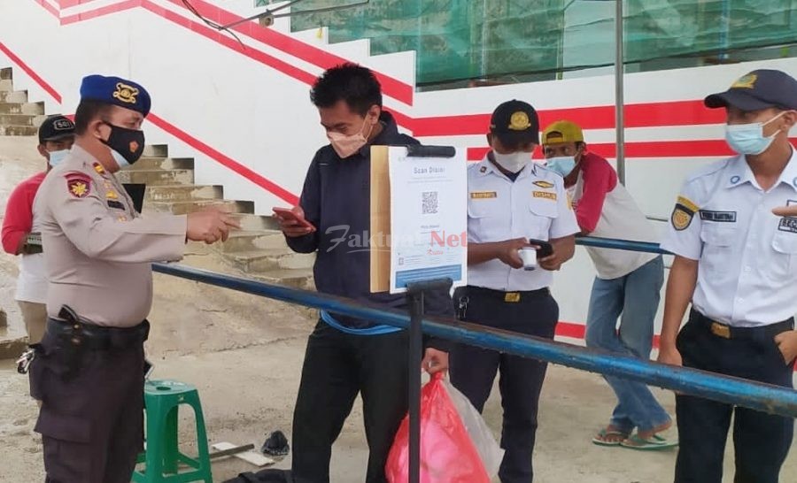 Mewajibkan warga dan wisatawan merapikan Protokol Kesehatan dan melakukan scan barcode aplikasi peduli lindungi saat tiba di pulau pemukiman.