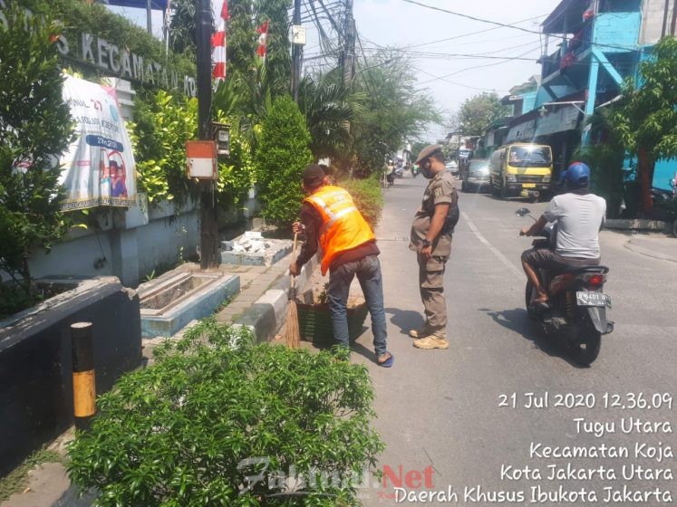 Faktual.Net, Jakarta-Tim Pengawasan Pembatasan Sosial Berskala Besar (PSBB) transisi melakukan monitoring di Jl Mahoni, Kelurahan Tugu Utara, Koja, Jakarta Utara, Selasa (21/07/2020).