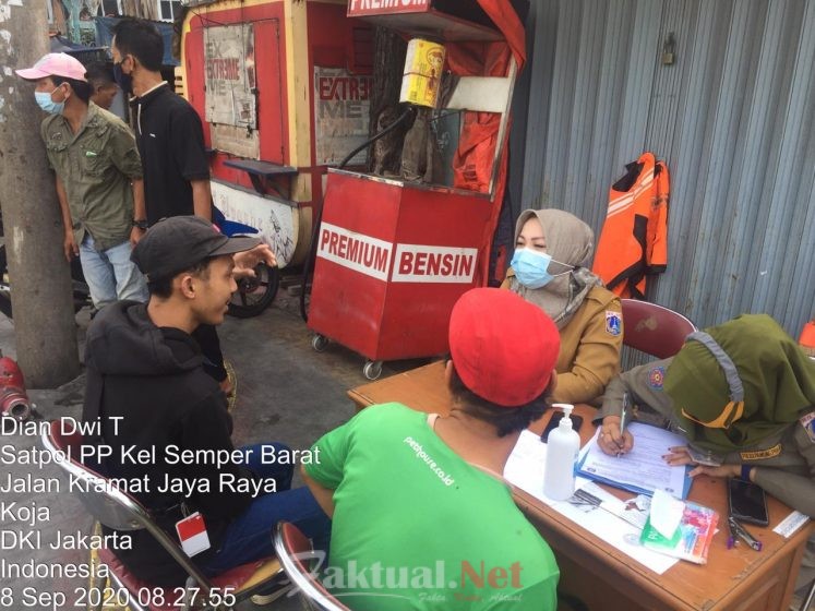 Jakarta, Faktual.Net-Kelurahan Semper Barat bersam Satpol PP Kelurahan Semper Barat menggelar Operasi Tertib Masker (TibMask) di Jalan Kramat Jaya, Selasa (08/09/2020). Kegiatan ini dilakukan untuk meningkatkan kesadaran masyarakat dalam menggunakan masker saat berada di luar rumah sebanyak 20 orang diberikan sanksi.