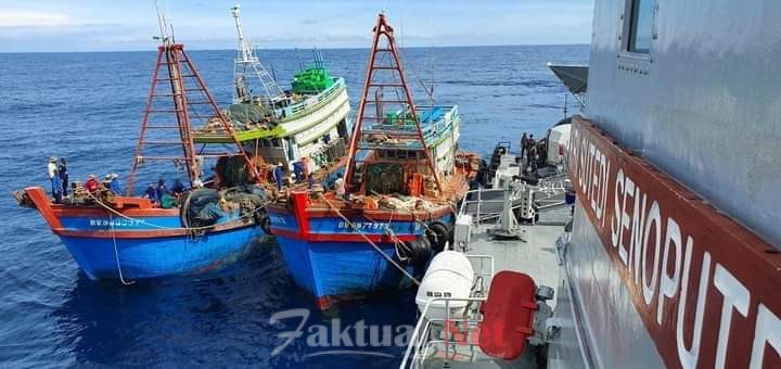 Faktual.Net, Natuna, kepulauan Riau, Patroli Rutin TNI AL KRI Sutedi Senaputra-378 (KRI SSA-378) menangkap 2 (dua) Kapal Ikan Asing berbendera Vietnam yang melakukan kegiatan illegal fishing di perairan Laut Natuna Utara. Minggu (13/12/2020).