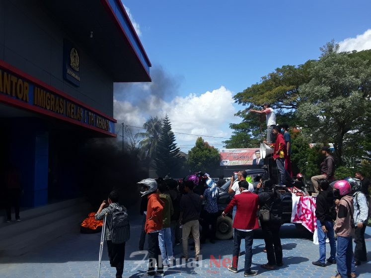 Unjuk Rasa Persatuan Pemuda Mahasiswa Sultra Bergerak di Kontor Imigrasi (Foto: Rasid/Faktual)