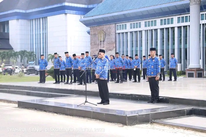 “Ada satu hal yang ingin saya sampaikan sesuai dengan pesan dan amanah dari Gubernur Sultra bahwa hari ini kita melaksanakan Upacara Kesadaran Nasional tentang kedisplinan perlu ditingkatkan,” Kata Sekda Sultra Asrun Lio dalam sambutanya.