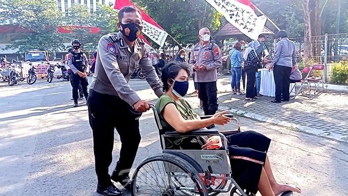 “Kami membuka layanan antar-jemput, khusus bagi lansia dan kaum disabilitas yang akan melakukan vaksinasi sehingga bisa berjalan lancar serta tidak perlu menunggu waktu yang lama,” jelas Kapolresta.
