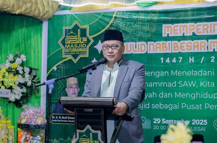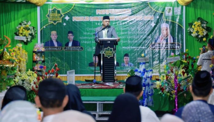 Dengan gaya khasnya, ia mengingatkan jamaah agar sungguh-sungguh mendengarkan hikmah Maulid dari para ustaz. “Kalau Pak Ustaz sudah ceramah, tolong jangan lagi ramai-ramai bicara di belakang. Dengarkan, pahami, lalu amalkan dalam kehidupan keluarga. Nabi Muhammad mengajarkan kita sabar, dan itu perlu dilatih,” ucapnya.