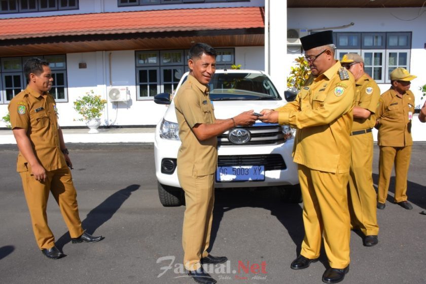 Faktual.Net,Tidore. Disela-sela apel pagi gabungan, Walikota Tidore Kepulauan, Capt. H. Ali Ibrahim, Senin (4/10) menyerahkan 1 unit mobil Hilux Double Cabin secara simbolis kepada Camat Oba Selatan (Obsel), Abdul Rasyid. Mobil yang bersumber dari DPA Perubahan Tahun Anggaran 2019 Bagian Umum dan Protokol Sekretariat Daerah Kota Tidore Kepulauan ini merupakan kendaraan operasional untuk Kecamatan Obsel.