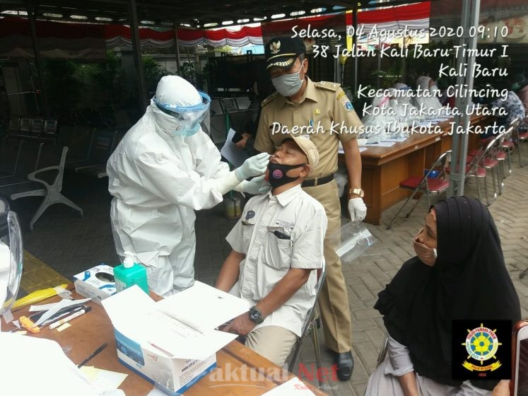 Jakarta, Faktual.Net-Sebanyak 101 warga dan pedagang kaki lima di wilayah Kelurahan Kalibaru, Cilincing, Jakarta Utara mengikuti swab tes massal yang dilaksanakan di halaman Puskesmas Kelurahan Kalibaru, Selasa (04/08/2020).