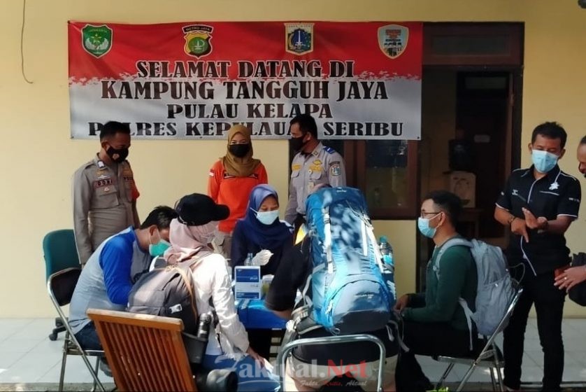 Faktual.Net, Kepulauan Seribu, DKI Jakarta-Kampung Tangguh Pulau Kelapa Polsek Kepulauan Seribu Utara, Polres Kepulauan Seribu melakukan pelayanan rapid tes gratis kepada warga dan wisatawan di Pulau Kelapa Kecamatan Kepulauan Seribu Utara di Posko Kampung Tangguh Jaya Pulau Kelapa.