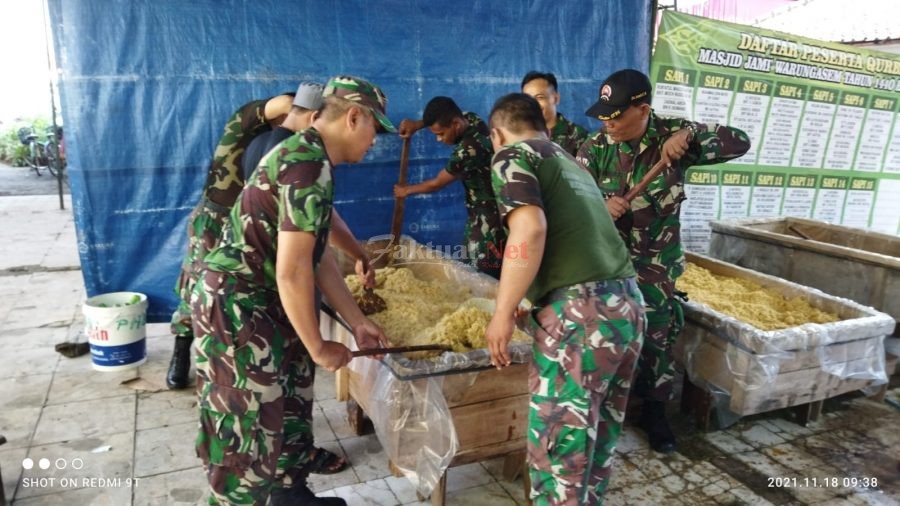 “Saya ucapkan banyak terimakasih kepada Bapak TNI dari Koramil 11/Warungasem, karena sudi membantu dalam membuat dan penyiapan nasi uduk,” ucap Helmi.