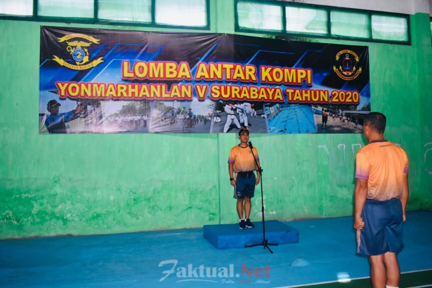 Faktual.Net, Surabaya. Batalyon Marinir Pertahanan Pangkalan (Yonmarhanlan) V Surabaya menggelar pertandingan antar Kompi tahun 2020 dalam rangka mempererat rasa kekeluargaan dan kebersamaan antar prajurit Batalyon Marinir Pertahanan Pangkalan V Surabaya.